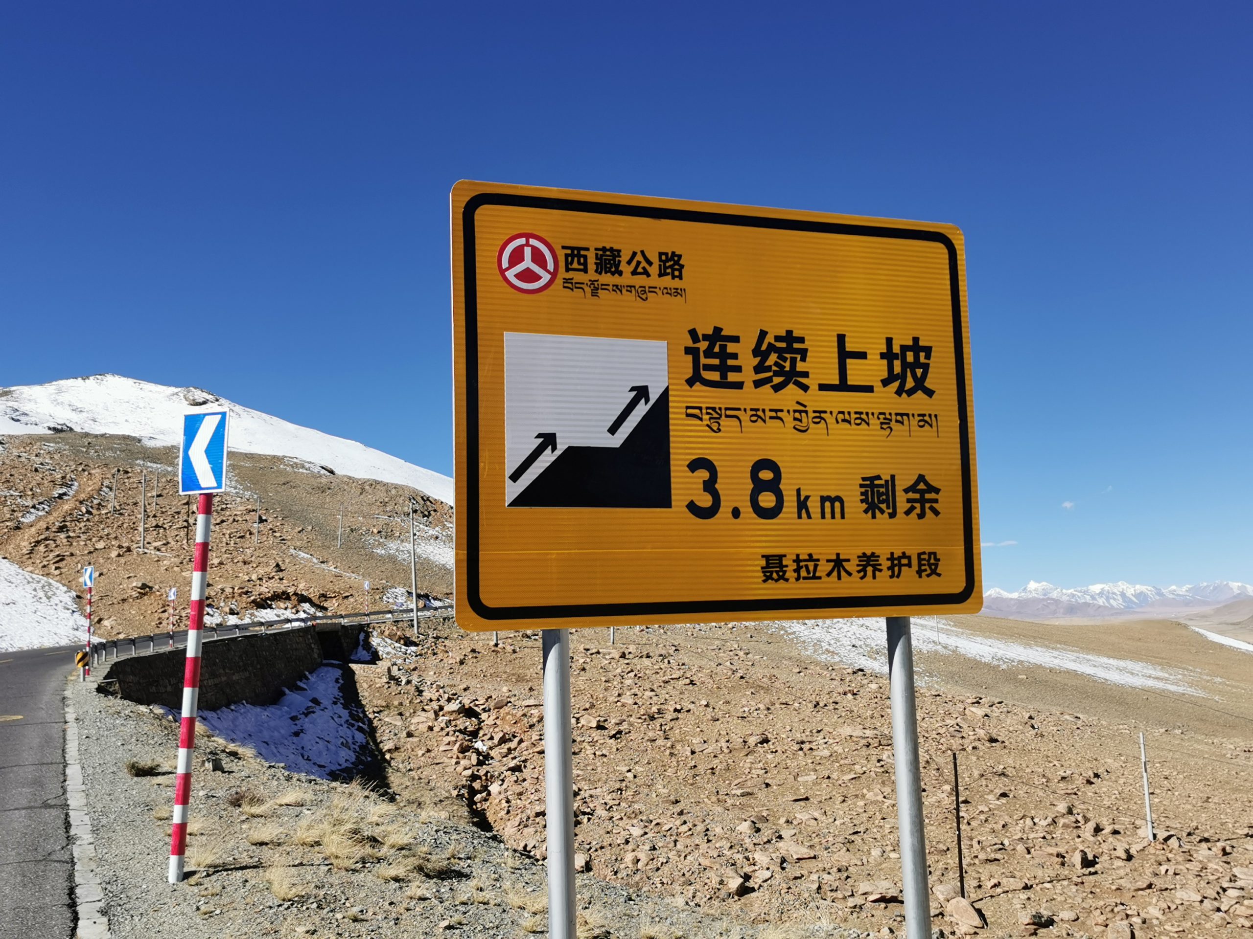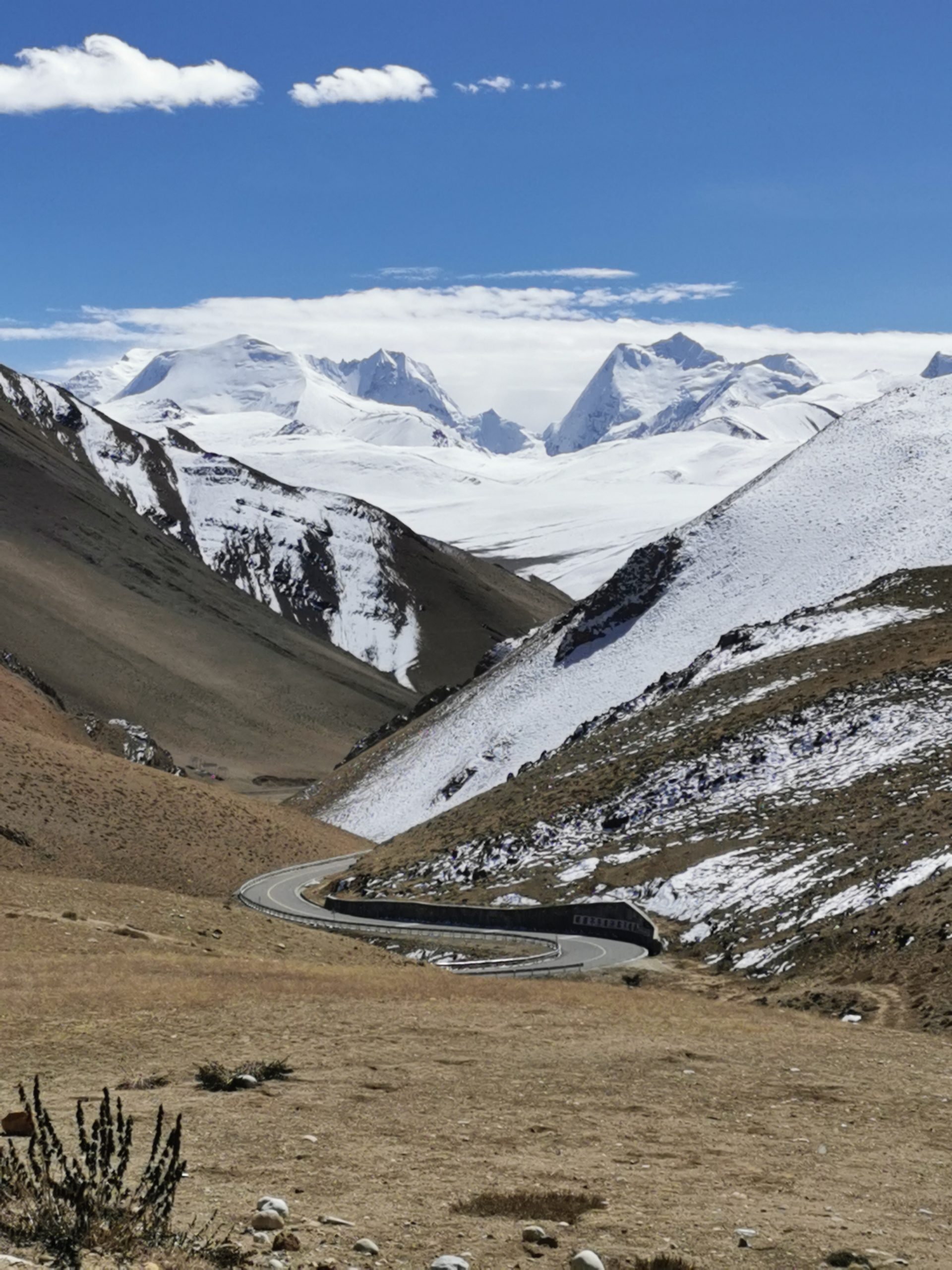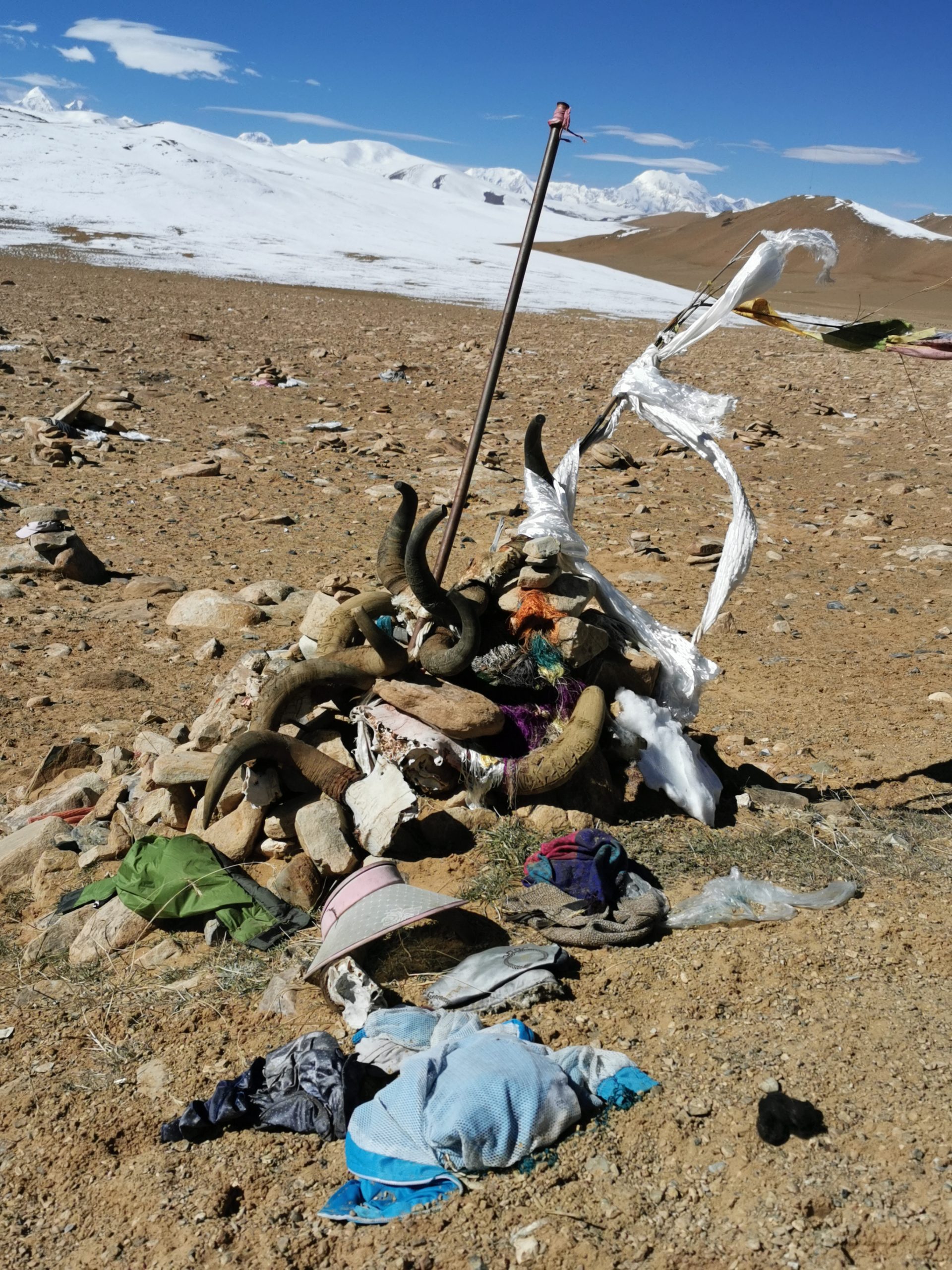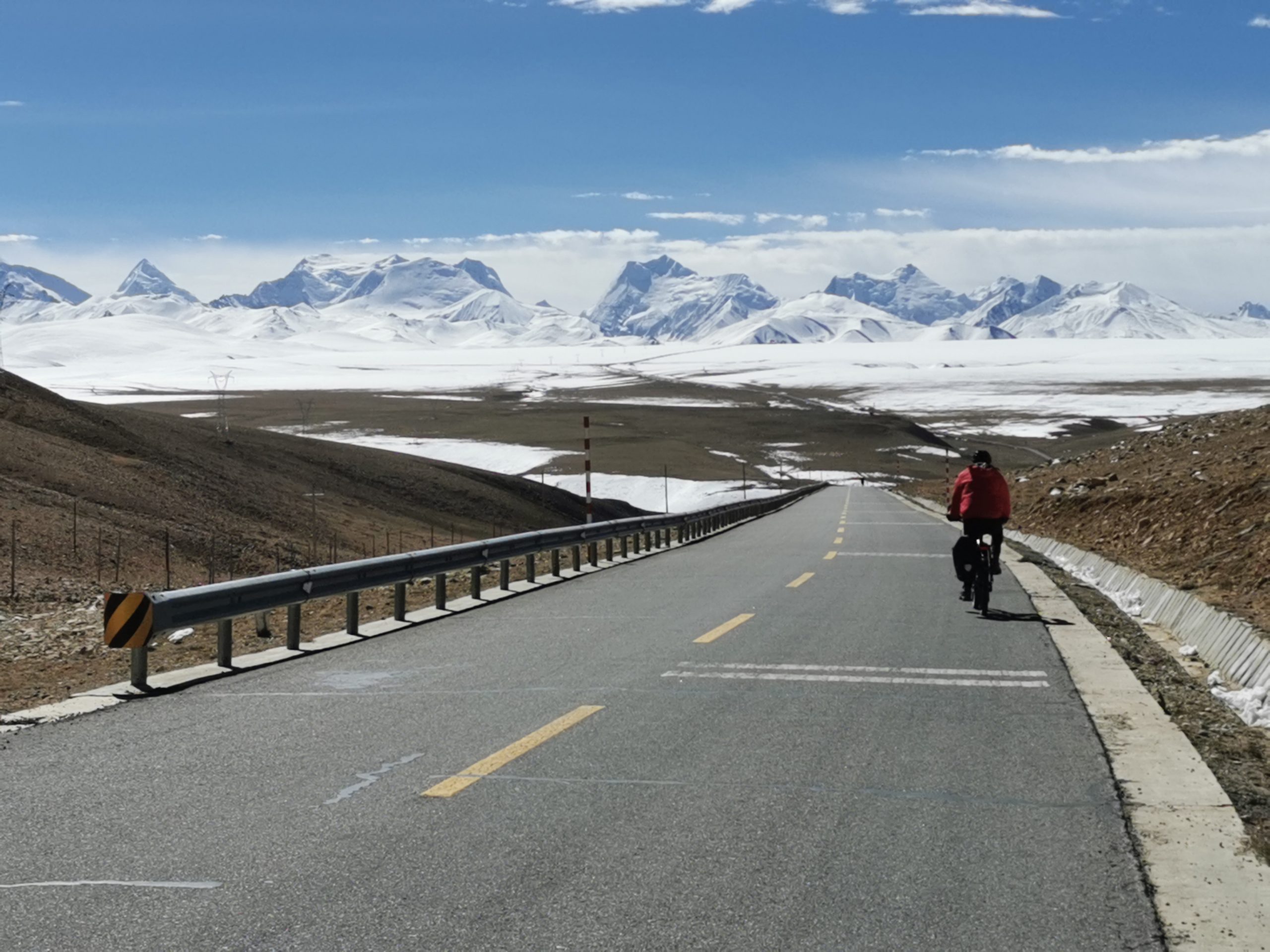 Vor die längeste Abfahrt der Welt hat Buddha aber erst die gefühlt längste Steigung gesetzt. Den ersten (und damit unseren vorletzten) Fünftausender nehmen wir noch mit Hurra, dann geht es ein wenig Schuss bergab (Gruß an den Shishipangma, der sich zur rechten nur leicht wolkenumhüllt vor uns aufbaut), eine kleine Teepause, bevor es dann an den finalen Aufstieg geht. Eine langgezogene Rampe, die dann einen langen Bogen nach rechts macht. Auf der Rampe steht der Gegenwind, und nach ein paar Kilometern schalten auch die Puristen unter uns in die höchste Unterstützungsstufe.