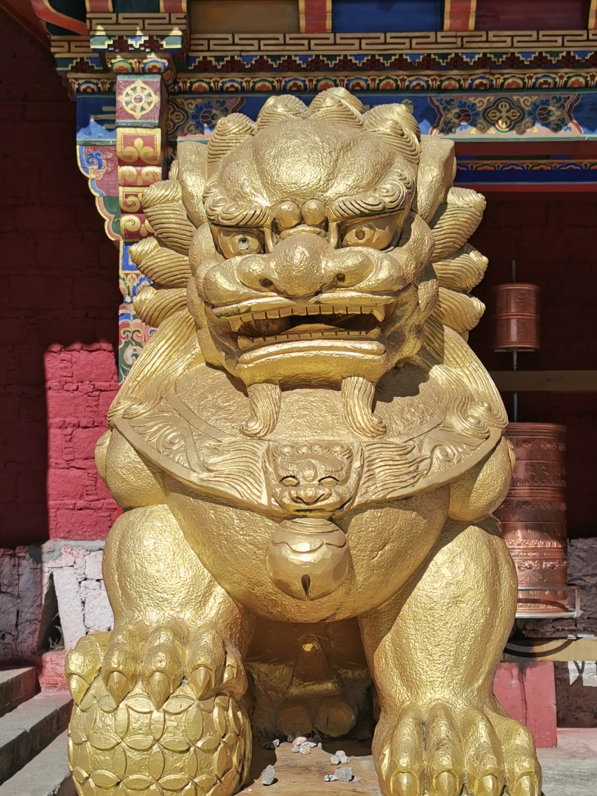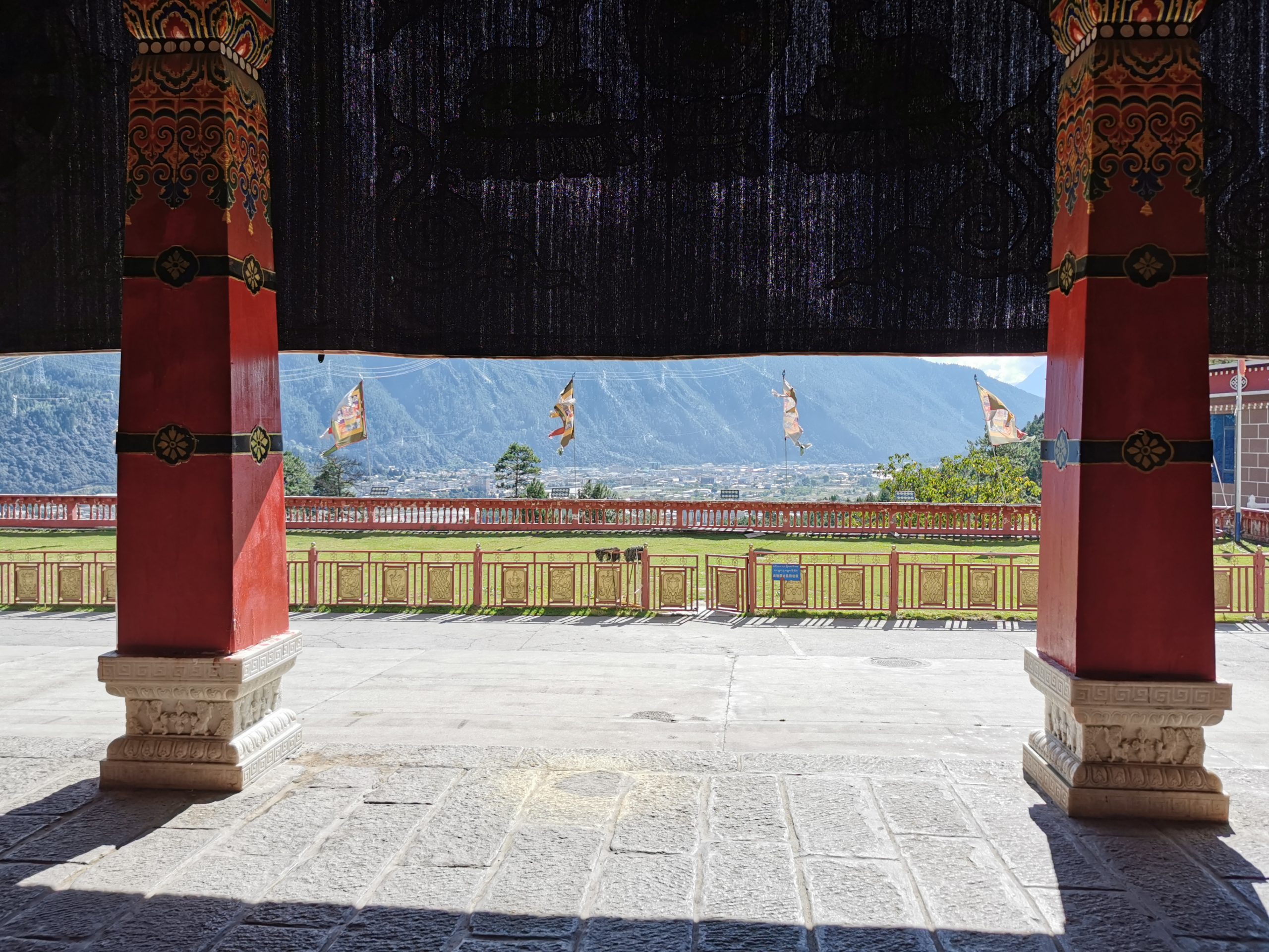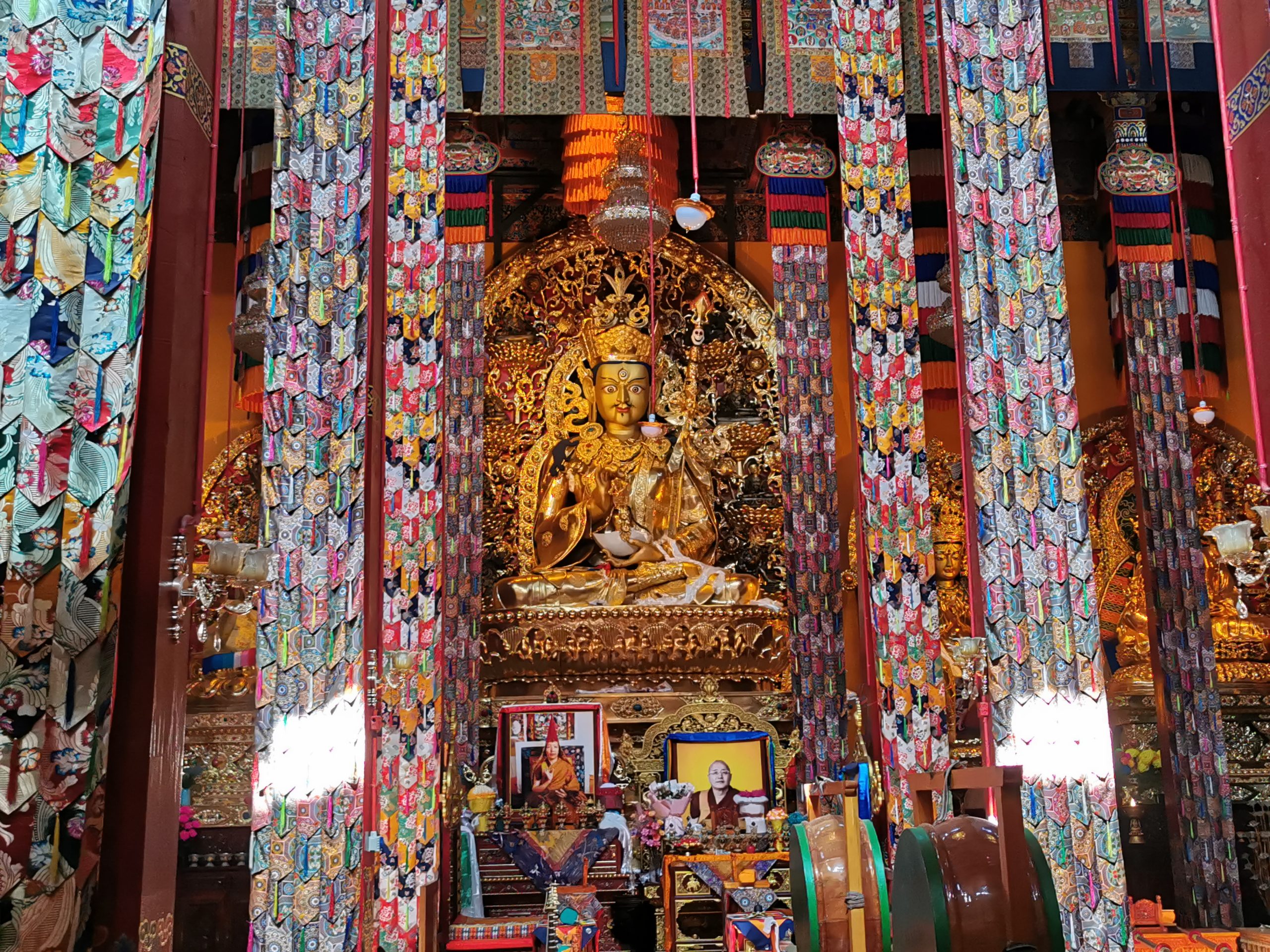 Anders als in Basu, wo wir das lokale Kloster nicht besichtigen durften, führt uns Sonam, unser tibetischer Reiseleiter, heute zum Dordong Samten Choeling Kloster, das etwas außerhalb von Bome am Berghang liegt. Eine kurzweilige Ausfahrt von sechs Kilometern einfacher Strecke, auf der wir viel über tibetische Ikonographie und Klosterarchitektur lernen.