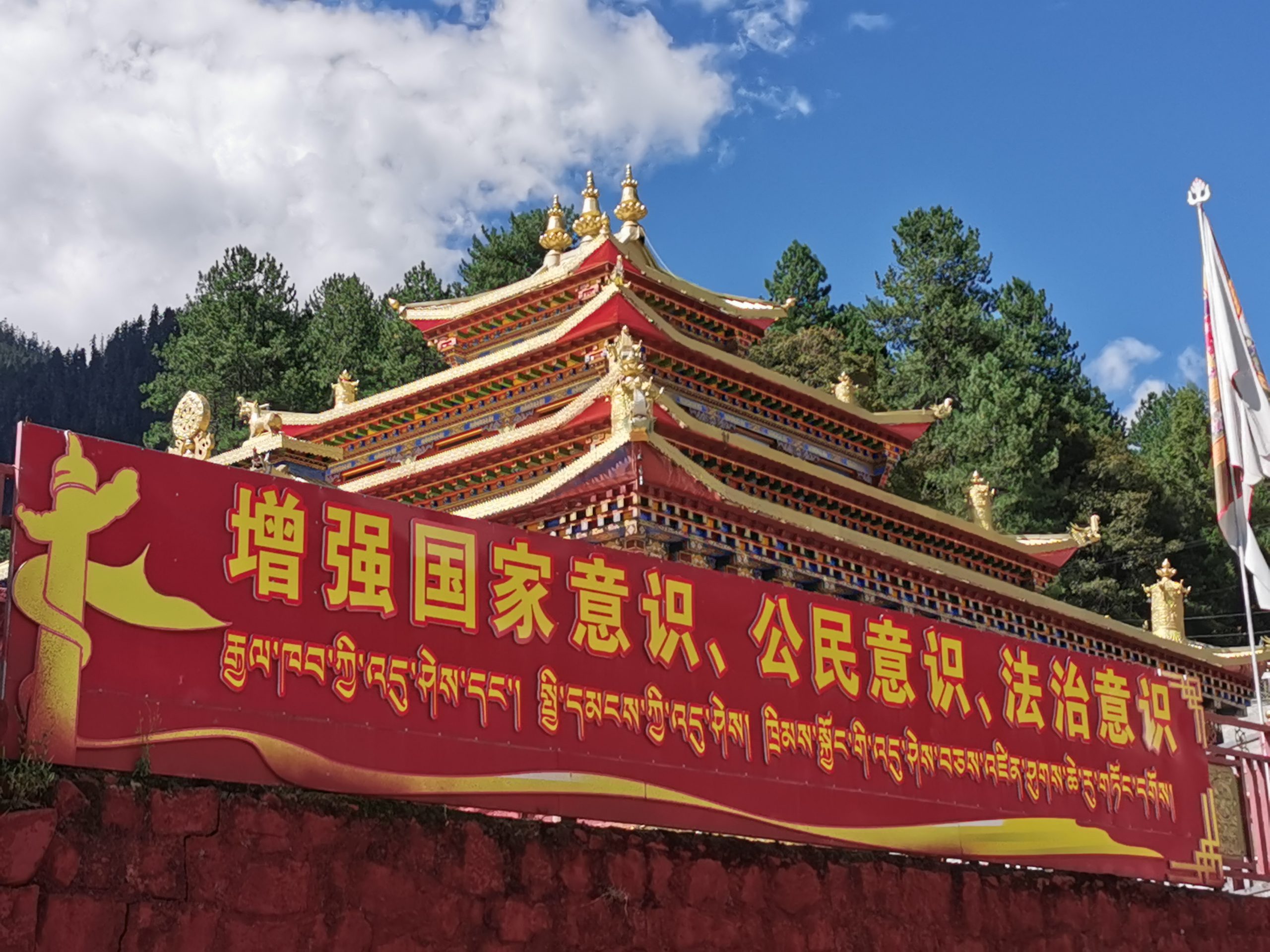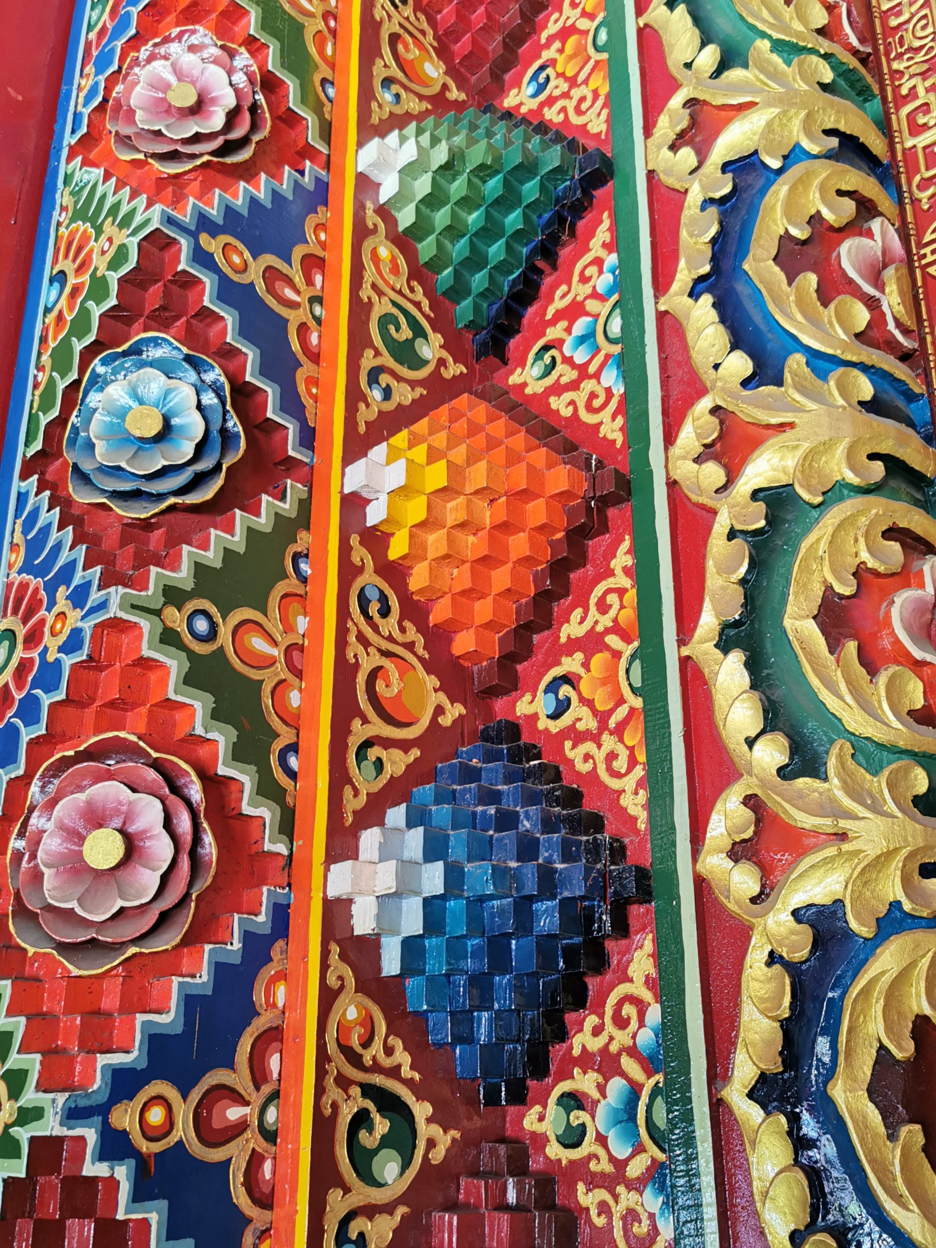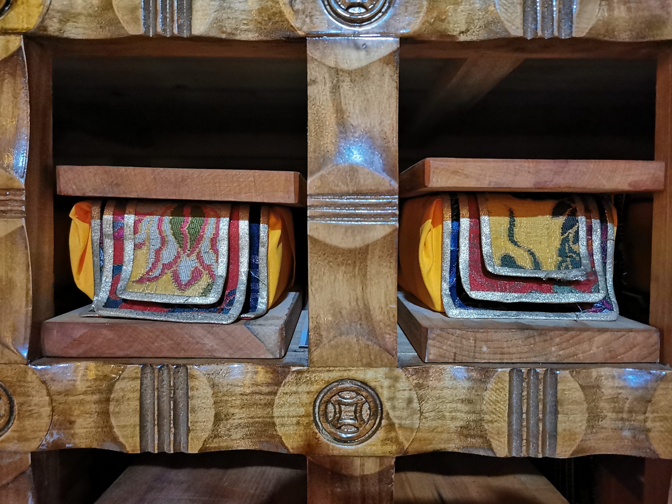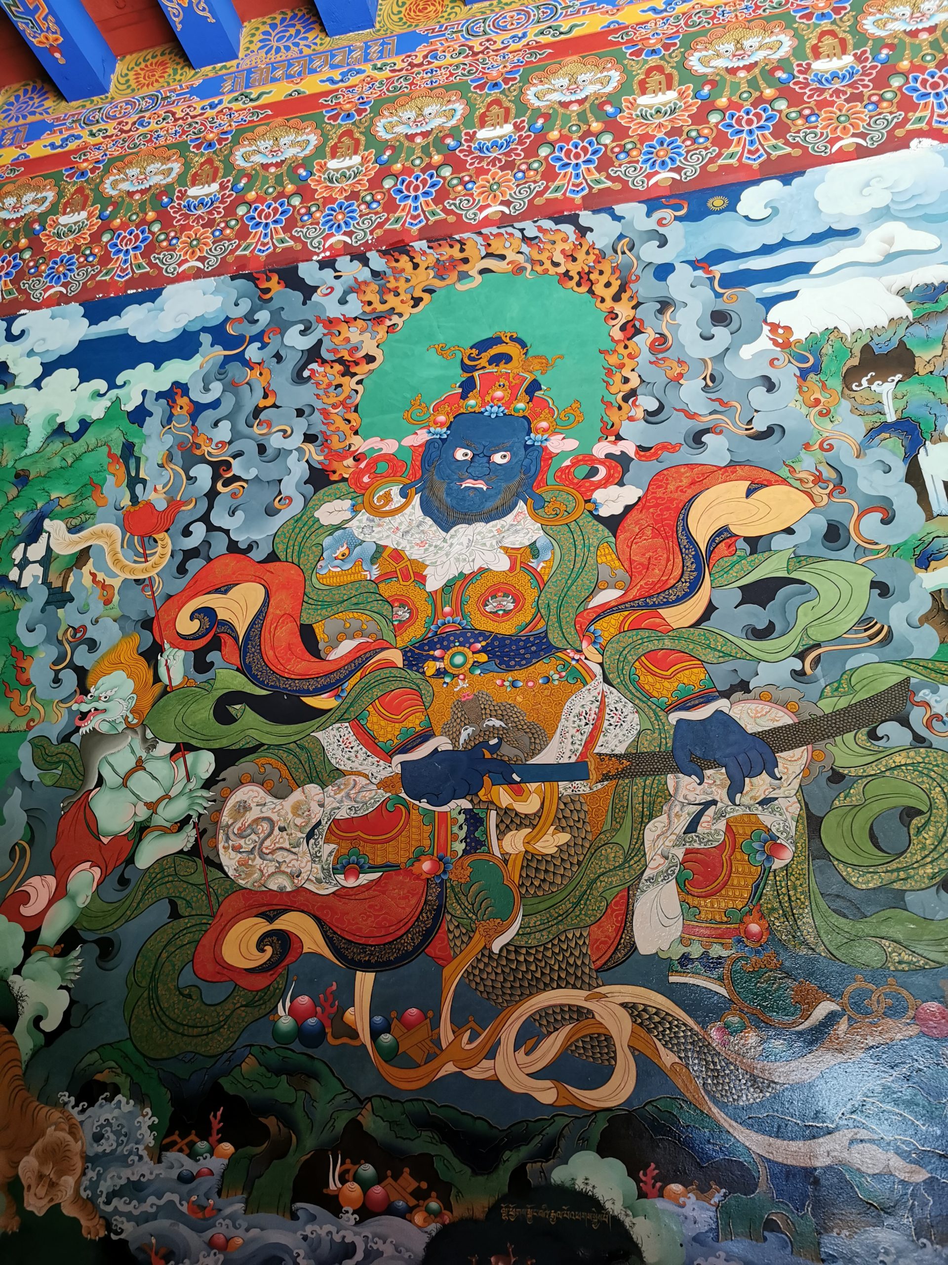 Anders als in Basu, wo wir das lokale Kloster nicht besichtigen durften, führt uns Sonam, unser tibetischer Reiseleiter, heute zum Dordong Samten Choeling Kloster, das etwas außerhalb von Bome am Berghang liegt. Eine kurzweilige Ausfahrt von sechs Kilometern einfacher Strecke, auf der wir viel über tibetische Ikonographie und Klosterarchitektur lernen.