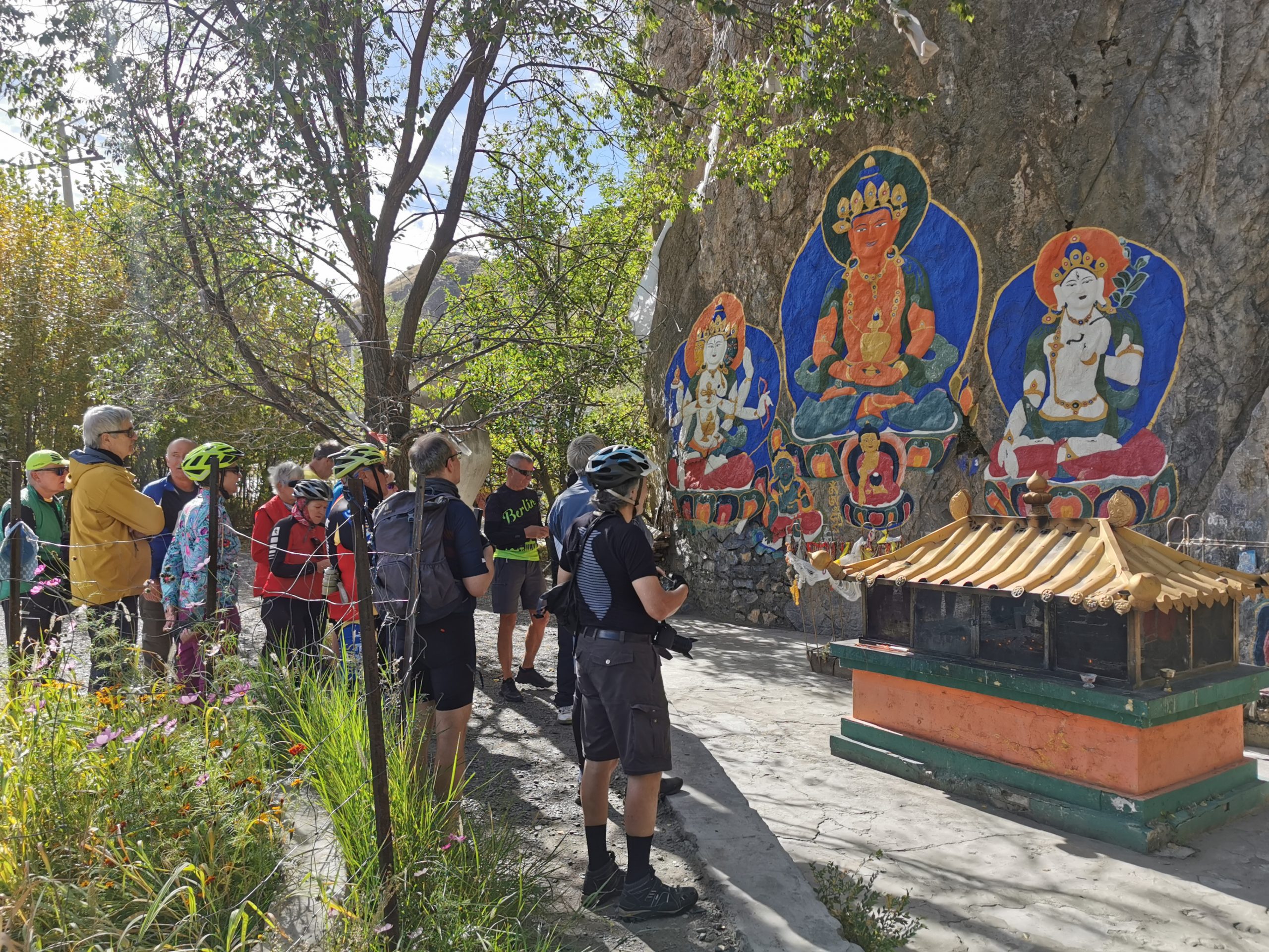 Heute wartet eine etwas seltsame Etappe auf uns: In Qushui, unserem Zielort, dürfen wir aus unerfindlichen Gründen nicht übernachten, obwohl es gleich drei gute Hotels dort gibt. Ganz traurig sind wir aber nicht, so können wir noch eine Nacht in unserem schönen Hotel in Lhasa bleiben. Am Vormittag radeln wir Richtung Qushui, immer am Lhasa-Fluss entlang, machen einem riesigen Buddha am Wegesrand unsere Aufwartung, und werfen in Qushui einen kurzen Blick auf den Brahmaputra, der uns morgen einen Weile begleiten wird. Auf dem Weg aus Lhasa hinaus, können wir uns ein Gruppenfoto nicht verkneifen, während ein Polizist händefuchtelnd „Weiterfahren!“ schreit. Aber so viel Zeit und Geduld muss sein!