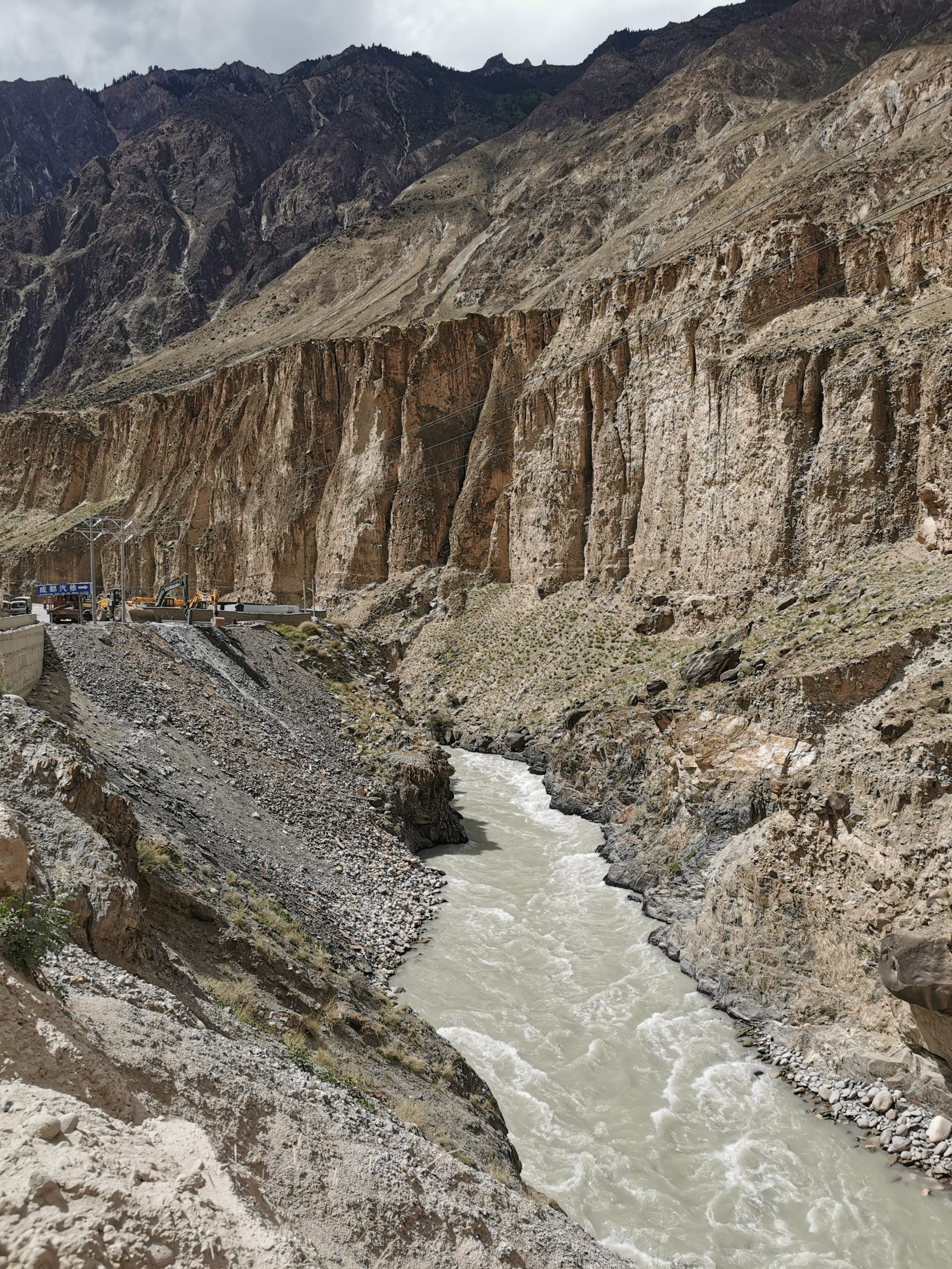Im Tal wird ein Tunnel gebaut, es verkeilen sich in den engen Kehren LKWs und Baufahrzeuge, schieben sich in Zeitlupe aneinander vorbei. Und zwischendurch erst Georg und ich, dann Michael und Mechthild und am Schluss mit bayrisch-badischer Ruhe Uli und Andi. Im Tal des Salween, der gewaltig wie ein Bergbach durch die Schlucht schießt, glücklich vereint, haben wir die Straße fast für uns allein, weil: Hinter uns staut es ja. Unser Begleitfahrzeug schafft es auch noch rechtzeitig, fünf Minuten vor kompletter Schließung der Straße wegen Bauarbeiten bis zum Abend habe wir die Baustelle hinter uns gelassen und verschlingen je eine große Portion Maultaschen mit Yakfleischfüllung.
