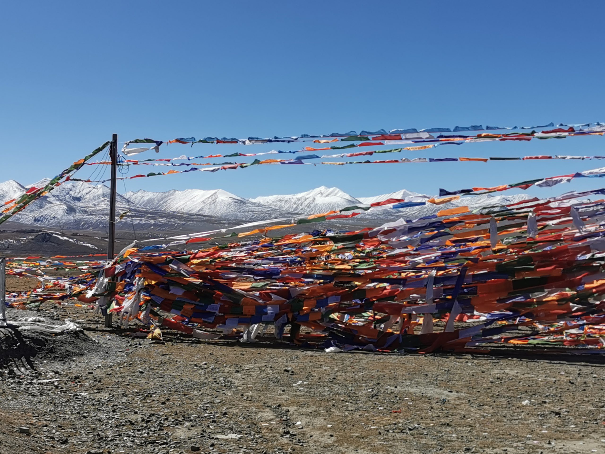 Und wärmen uns dann gleich mit dem ersten und einzigen Pass des Tages auf. 5.238 Meter hoch, und als wir am späten Mittag die Passhöhe erreichen, weht zwar ein kalter Wind aus Süden (also uns entgegen), aber es lässt sich aushalten auf der Höhe, weil die Sonne uns bereits kräftig auf den Pelz brennt.
