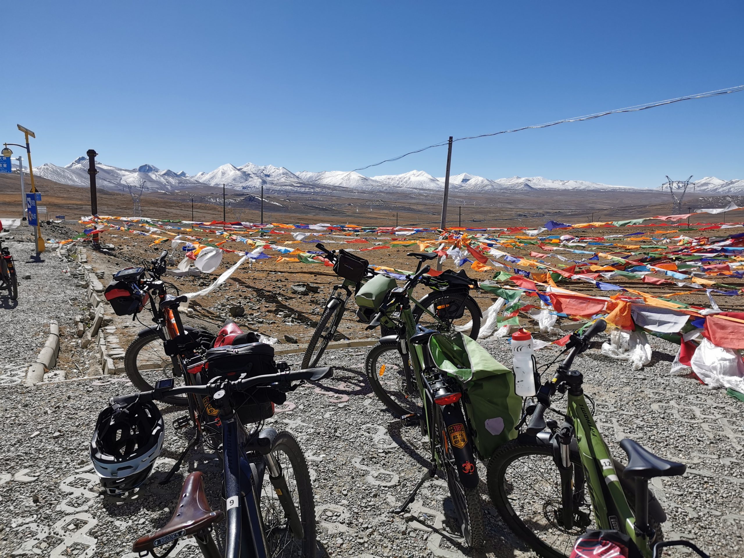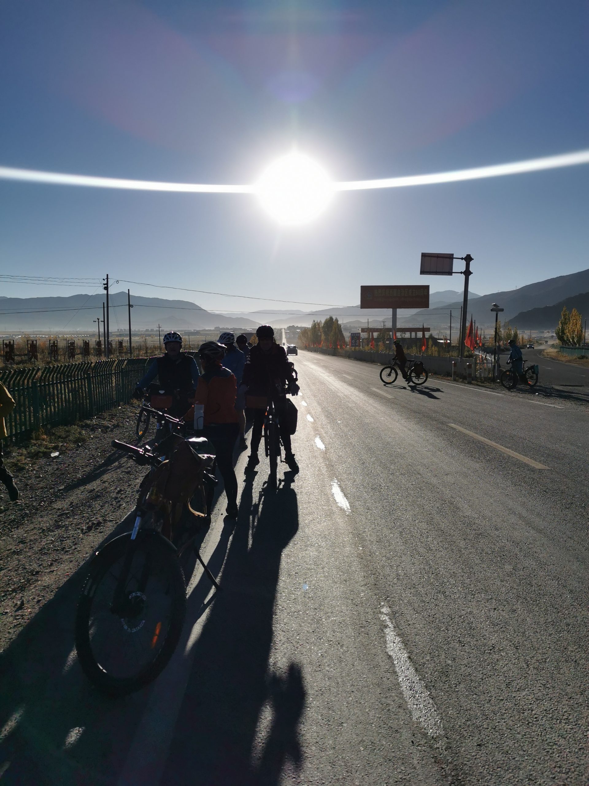 Die Sonne brennt! Aber wir wollen uns nicht beschweren. Die Höhensonne ist unsere Freundin, wärmt Arme und Beine, wenn wir zum kühlen 9 Uhr schon auf den Rädern sitzen. Ja, richtig gehört, reale Uhrzeit wäre in Tibet minus zwei Stunden, wir sitzen temperaturtechnisch um 7 Uhr auf den Rädern.
