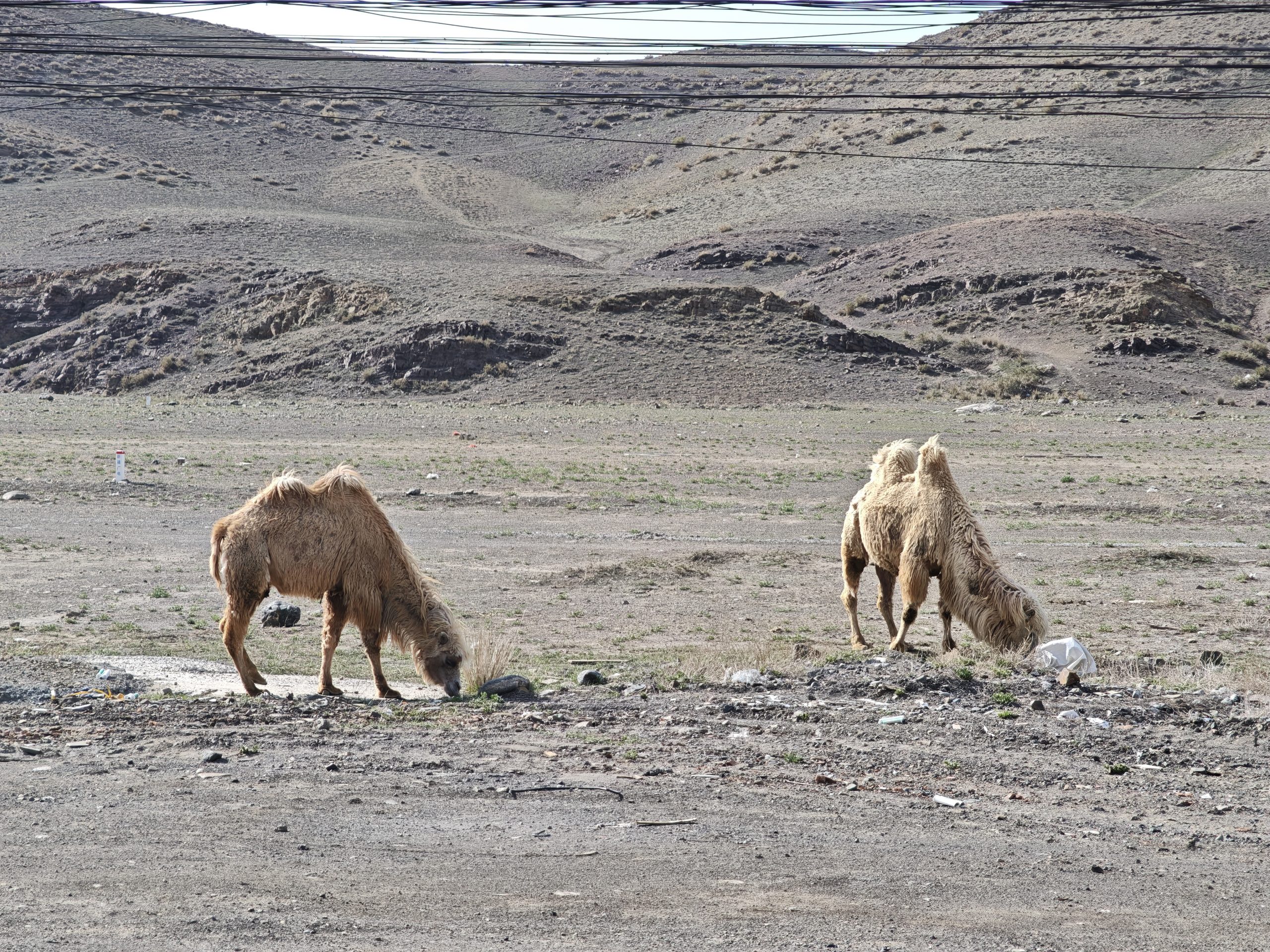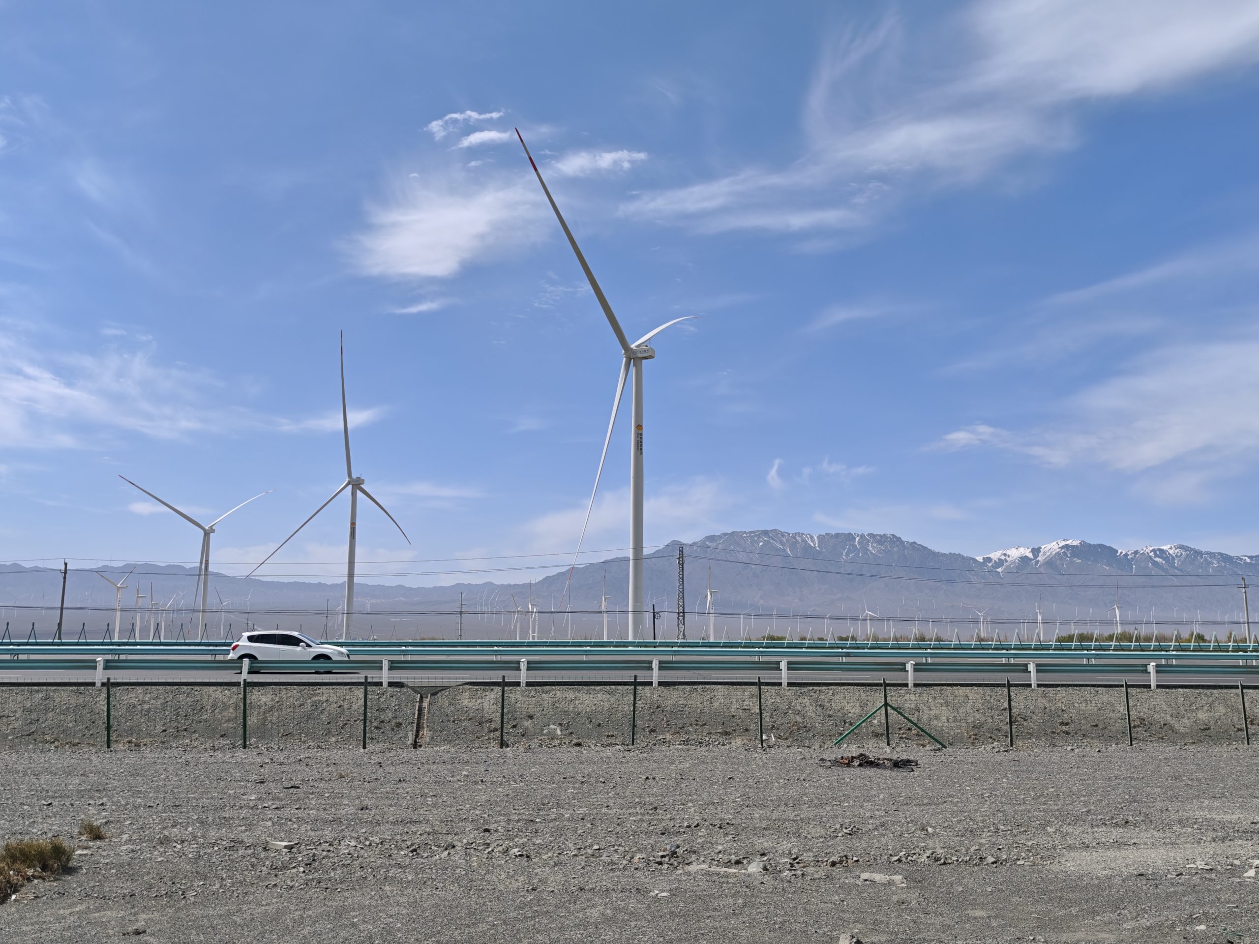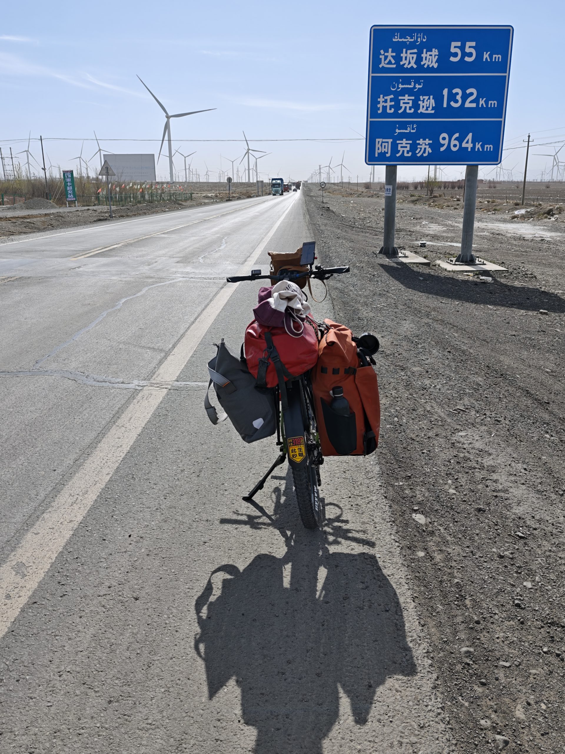 Von der Etappe von Urumqi nach Dabanchang habe ich vom letzten Mal, als ich 2006 mit dem ARTE-Team unterwegs war, in Erinnerung, dass sich der Weg aus der Stadt hinaus unheimlich zog, stetig leicht bergan ging, mir ein stammer Wind entgegen blies, und ich so genervt war, dass ich mich noch nicht mal an den Hunderten von Windrädern erfreuen konnte. Was ein E-Bike doch für einen Unterschied macht! Der leichte Anstieg über die ersten 30 Kilometer nervt kein bisschen und dann kommt zum elektrischen auch noch realer Rückenwind hinzu. Nach 30 Kilometern geht es dann nur noch eben bis bergab, und siehe da, das Einstraßennest Dabanchang hat nun fünf Straßen, ein halbes Dutzend passable Unterkünfte (ich logiere bei Frau Wen, die gerade Taichi-Übungen in der Rezeptionshalle macht, als ich mein Rad reinschiebe.) Eine sehr saubere, schöne Unterkunft, anders als vor 20 Jahren, als ich bei einem Blick auf die Absteige, bestes, weil einziges Haus am Platz, mich gleich wieder aufs Fahrrad gesetzt habe und lieber die 120 (fast) Bergabkilometer am Nachmittag abgerissen habe, um Turfan zu erreichen. Das ist heute nicht notwendig, ich suche mir ein nettes Grillrestaurant an der Hauptstraße und genieße meinen ersten Lammgrillspieß. Einziger Wehmutstropfen: Die beiden großen Zapfanlagen, eine für Fassbier, die andere für Kwass (leicht angegorener Brottrunk) sind leer. „Der Tanklastwagen war heute nicht da!“, erklärt sie lakonisch und gießt mir noch einen Tee ein.
