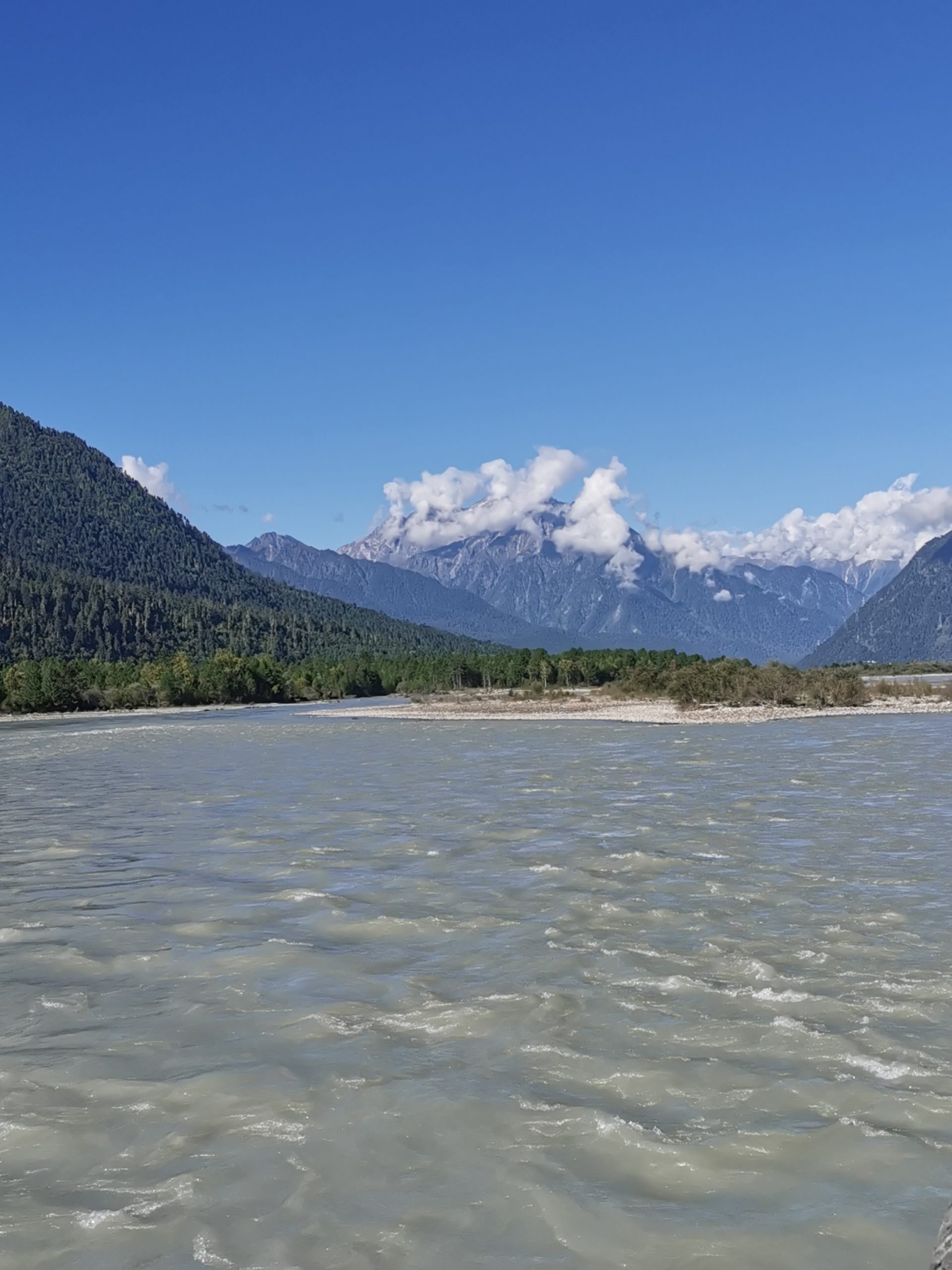 Hat ganz schön Zug, der Parlong Zangbo! Die heutige Etappe radeln wir immer am Fluss entlang, „tendenziell bergab“, wie ich immer gerne sage, sprich: Der Zielort liegt tiefer als der Startpunkt. In diesem Falle sogar deutlich. In Tangme, unserem Übernachtungsort, einem eher tristen Straßendorf, das zudem noch vom Staub der nahen Eisenbahnbaustelle überzuckert ist, kratzen wir die 2000-Meter-Marke von oben. Mit 2090 Metern Höhe ist Tangme der niedrigste Übernachtungsort seit über zwei Wochen. Wir atmen mehrmals tief ein, Luft holen für die nächsten 4000er!