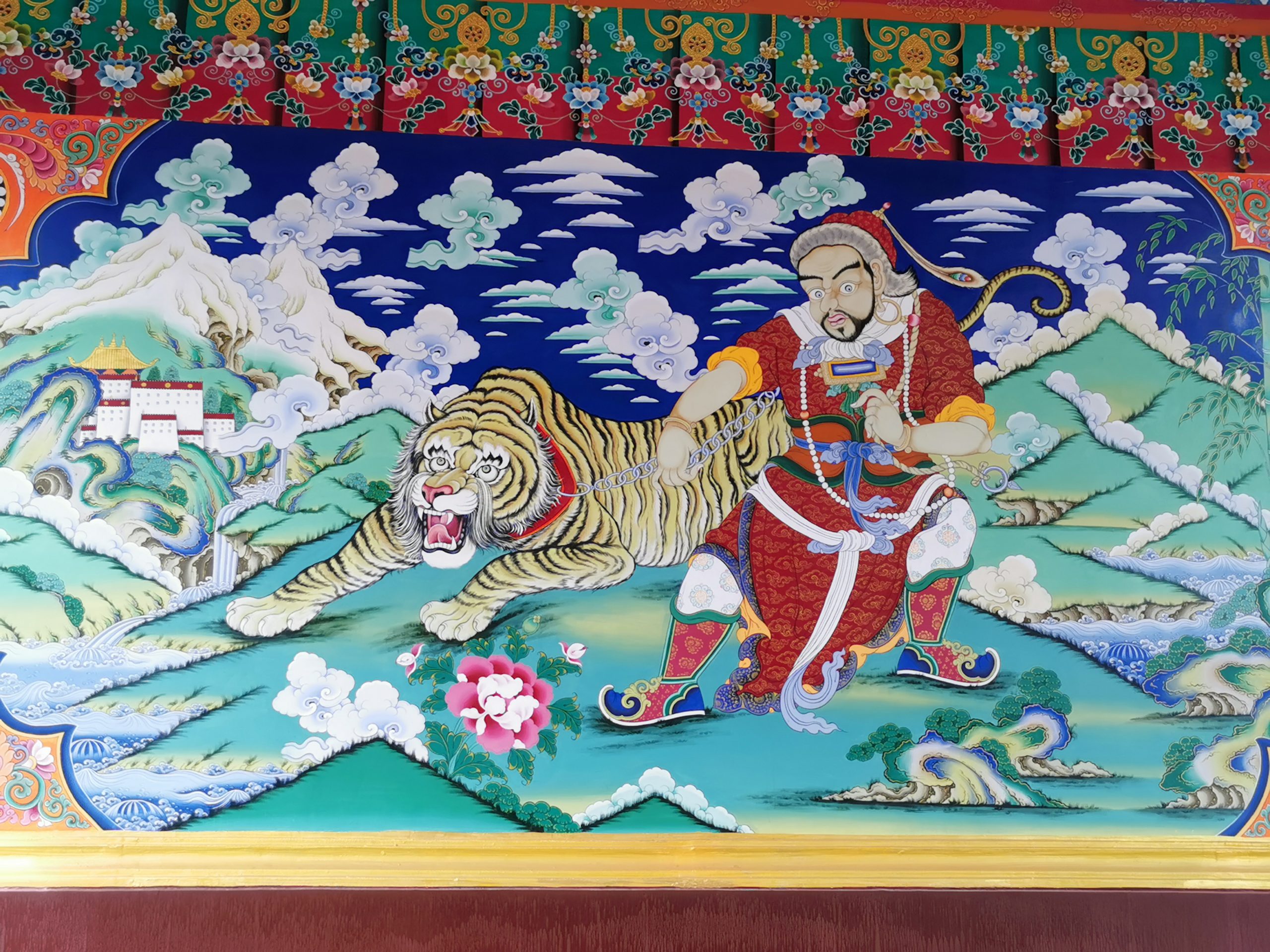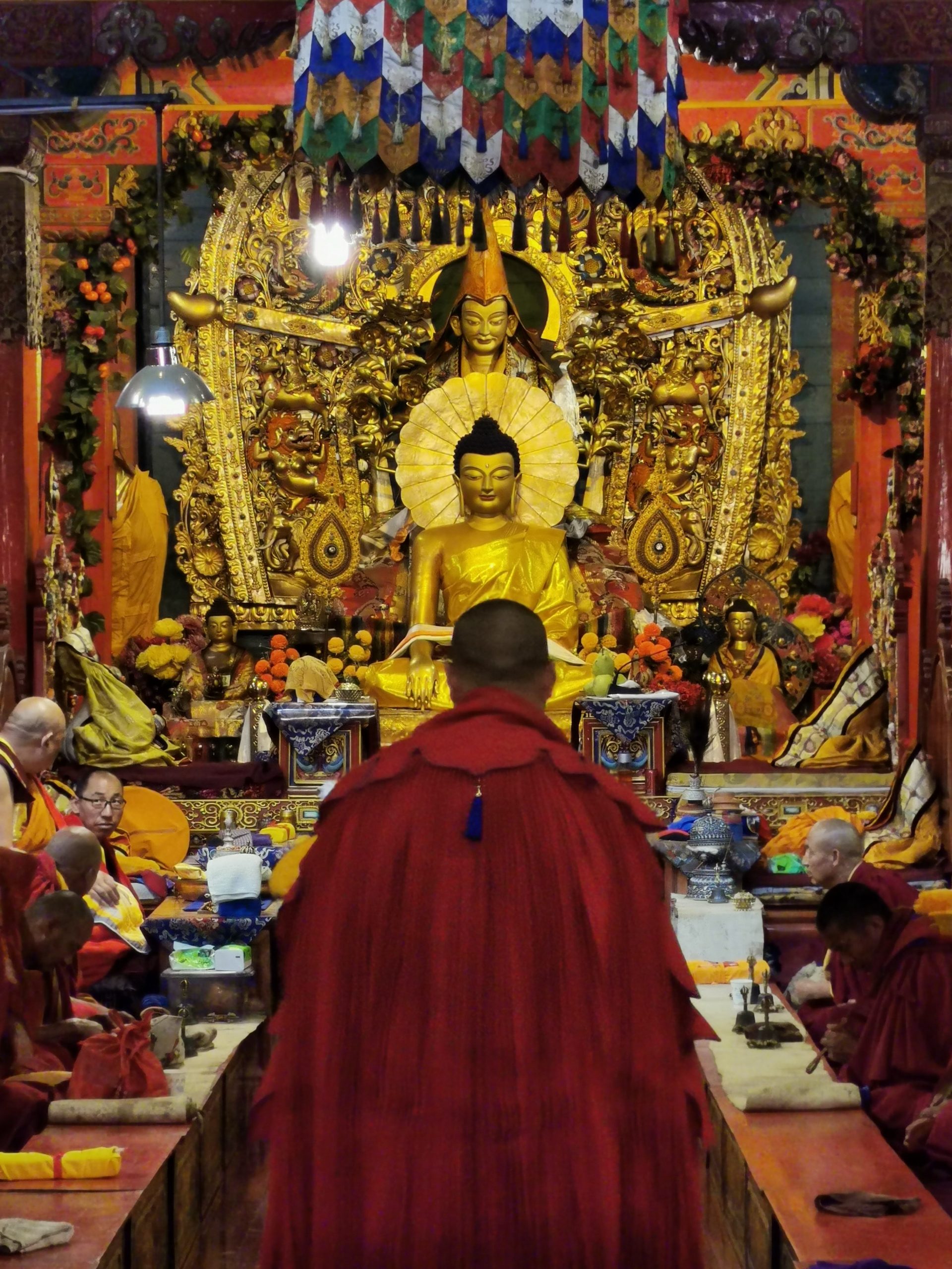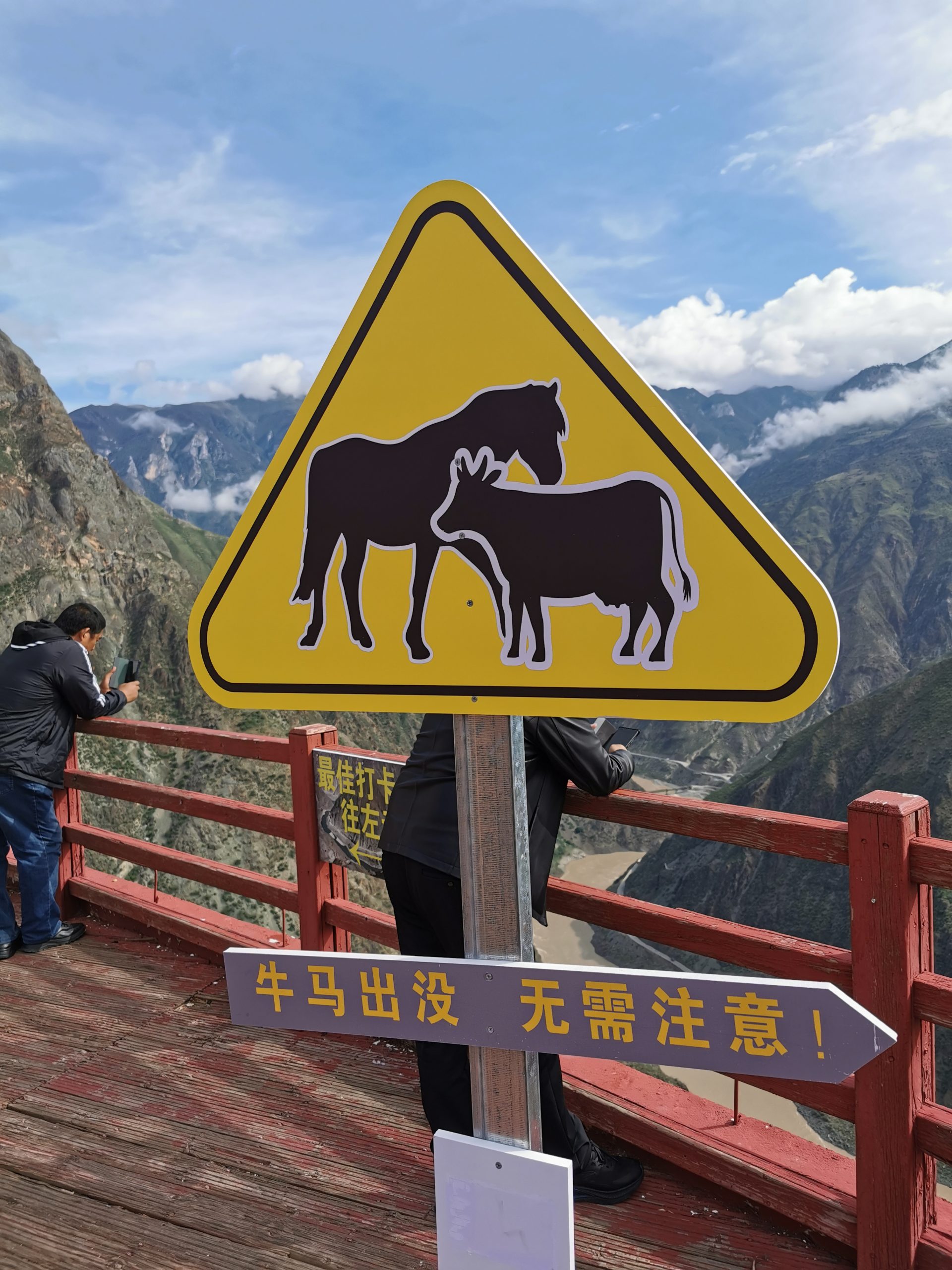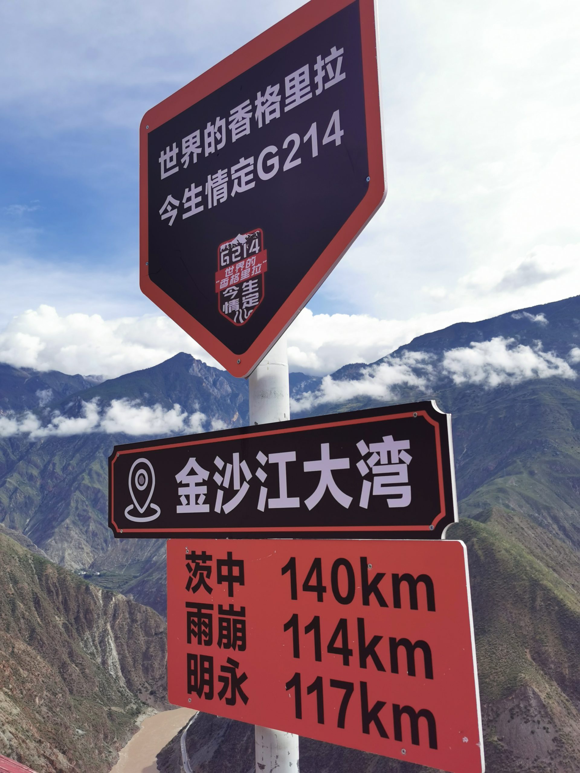 Der Tag beginnt mit einem typischen tibetischen Frühstück: Yakbuttertee, Tsampa und allerlei Drumherum. Und da, wo möglich, keine ranzige Yakbutter für den Tee benutzt wird, schmeckt der Tee auch äußerst lecker, weckt und wärmt. Nicht, dass es nötig wäre, den ganzen Tag radeln wir bei sommerlichen Temperaturen, fast ausschließlich bergauf, insgesamt gut 1.200 Höhenmeter. Mit elektrischer Unterstützung ist das tatsächlich ein Heidenspaß. Die Aussicht auf die erste Biegung des Yangzi (ehemals die erste, erste, weil in Shigu, 200 Kilometer flussabwärts schon lange eine „erste Biegung des Yangzi gefeiert wird) ist atemberaubend, der Baima Snow Mountain hüllt sich allerdings in Wolkenwatte. Wir besichtigen das Dongzhulin-Kloster, das als Kleinod am Yangzihang klebt und erreichen am späten Nachmittag unsere kleine, etwas in die Jahre gekommene Unterkunft.
