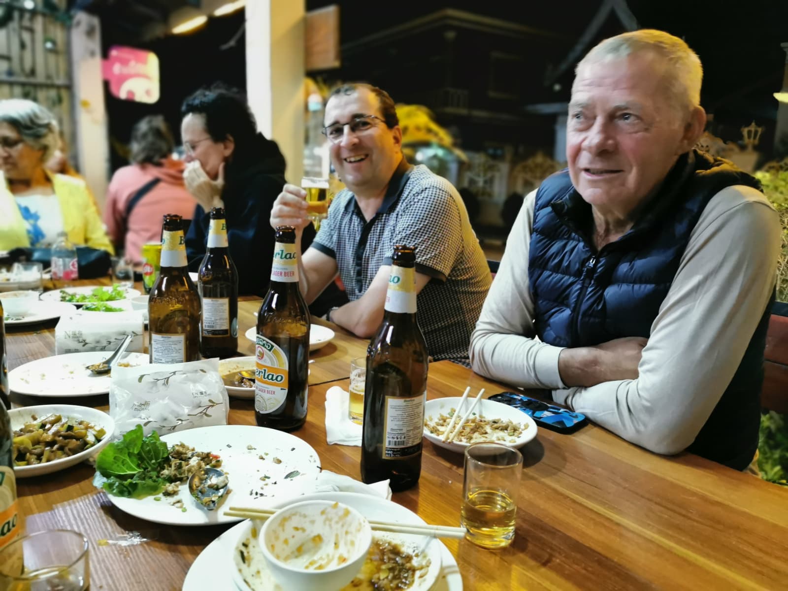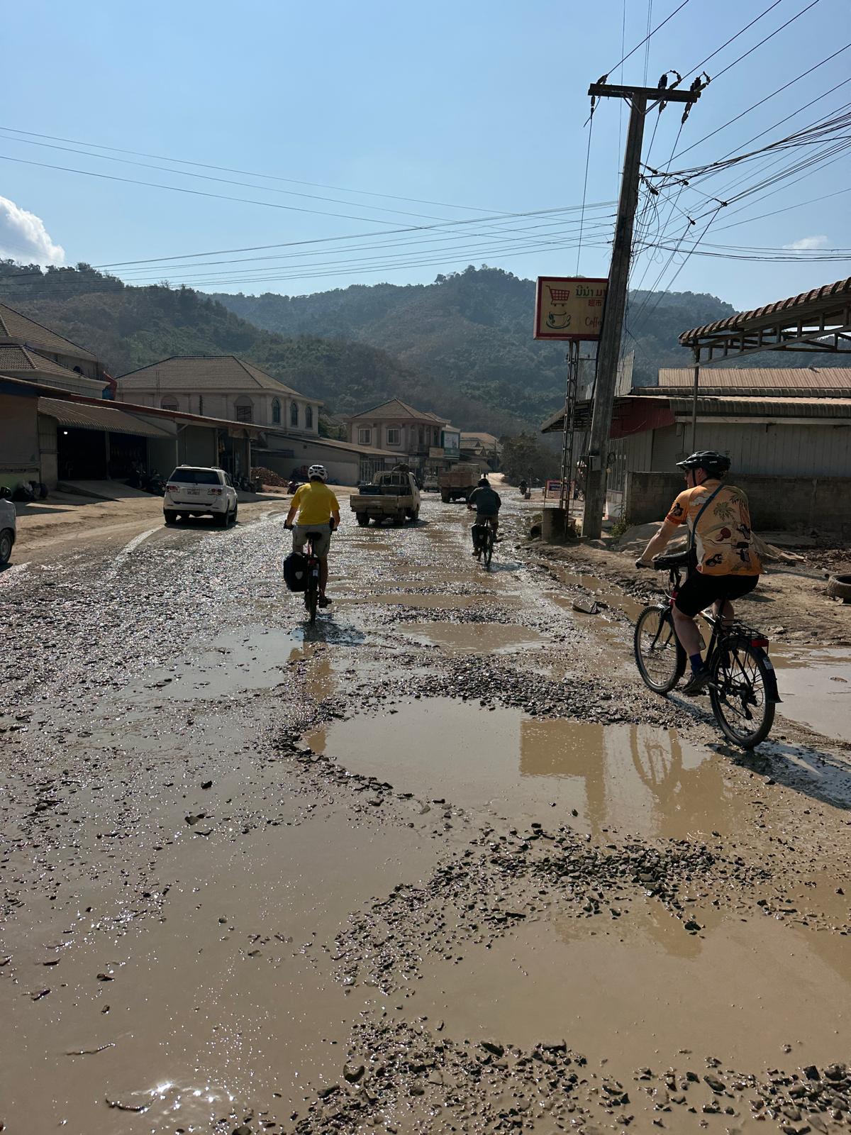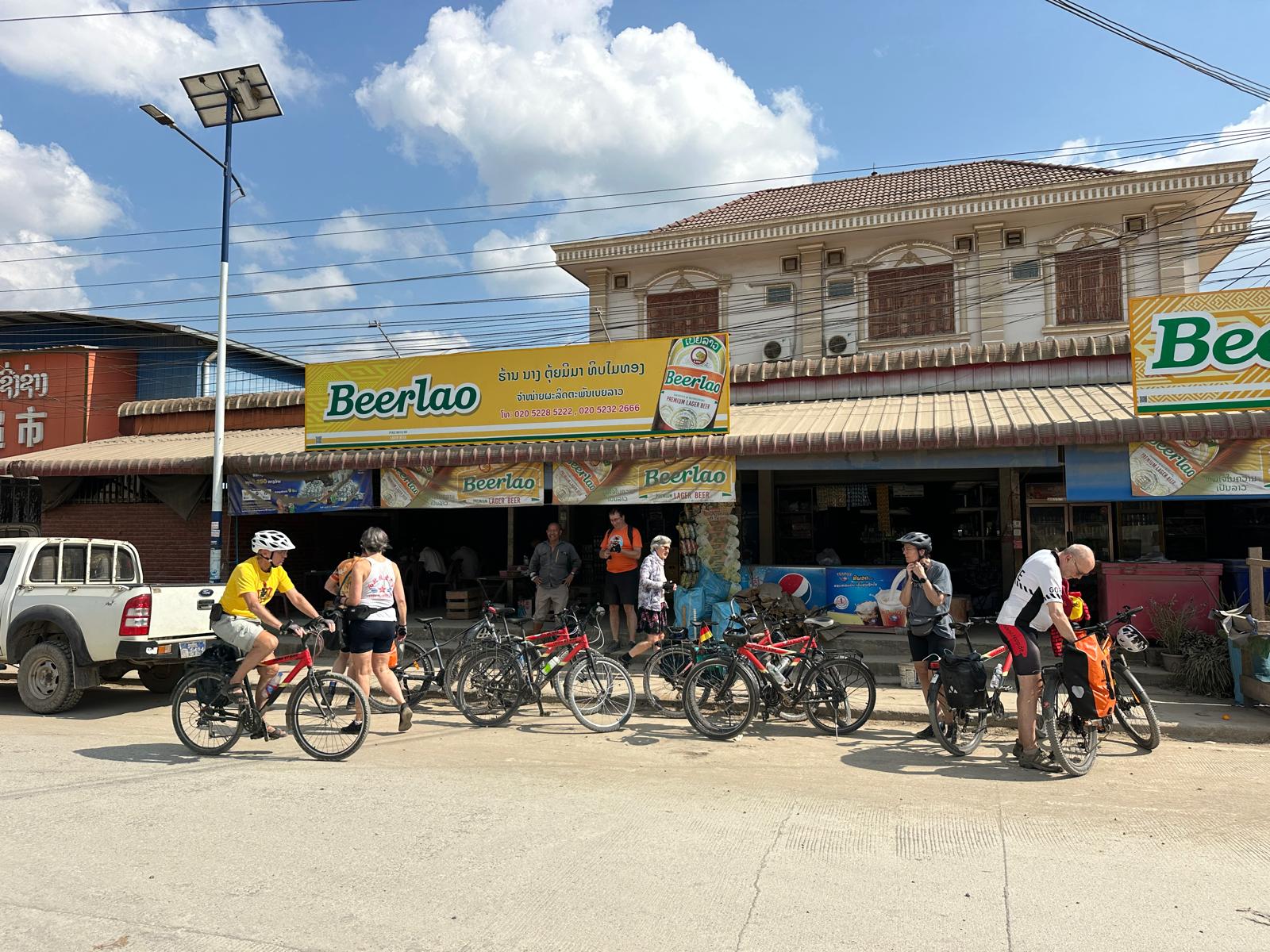 Mächtig eingestaubt kommen wir in unserem familiengeführten Guesthouse an und gönnen uns erst einmal ein Beer Lao, das den Namen „Schmutzbier“ (eine alte China-By-Bike-Tradition, das Ankunftsbier vor der Dusche) wahrlich verdient hat.