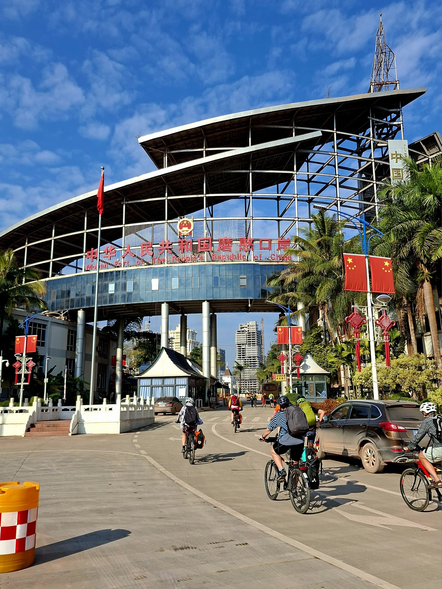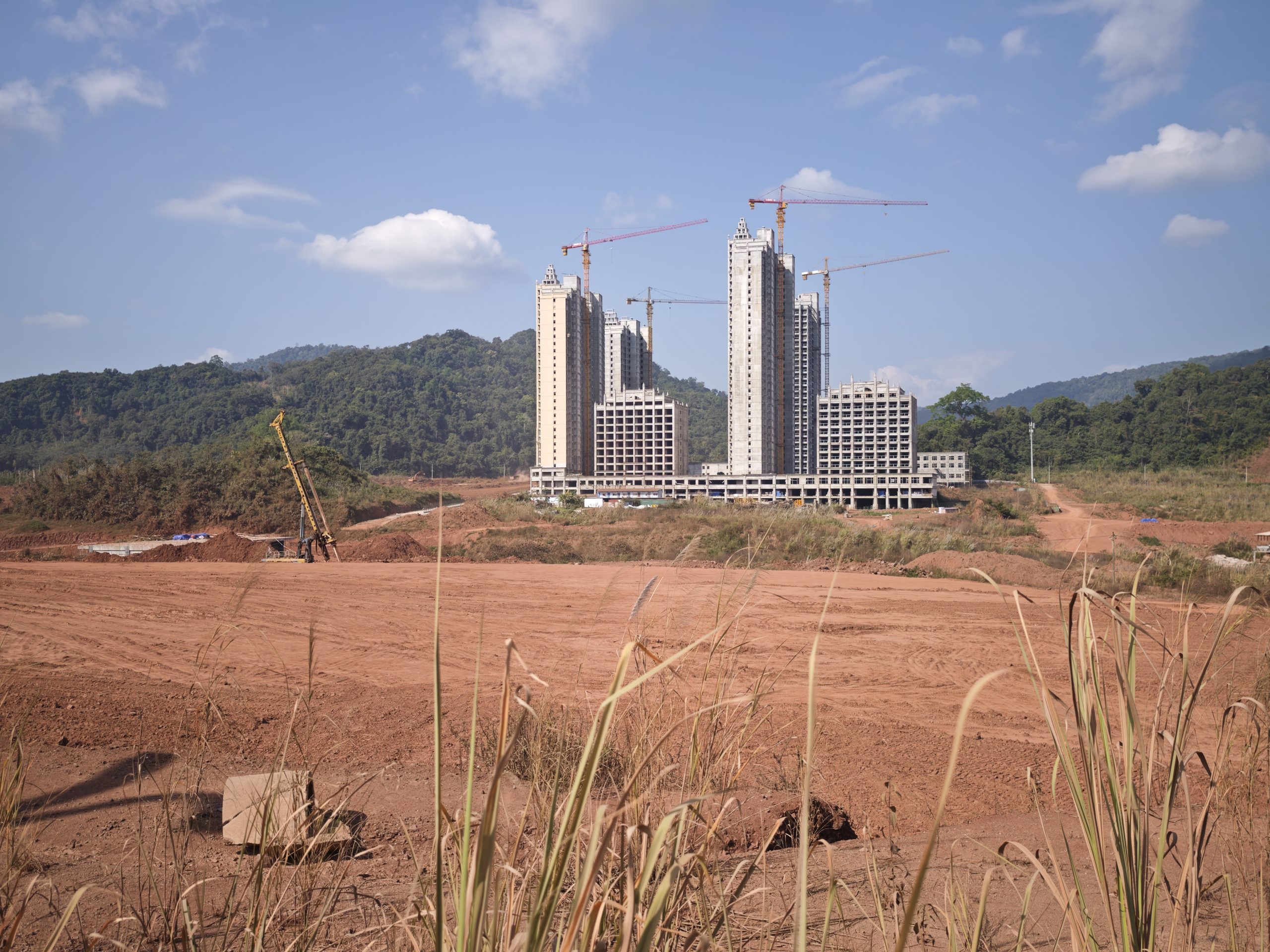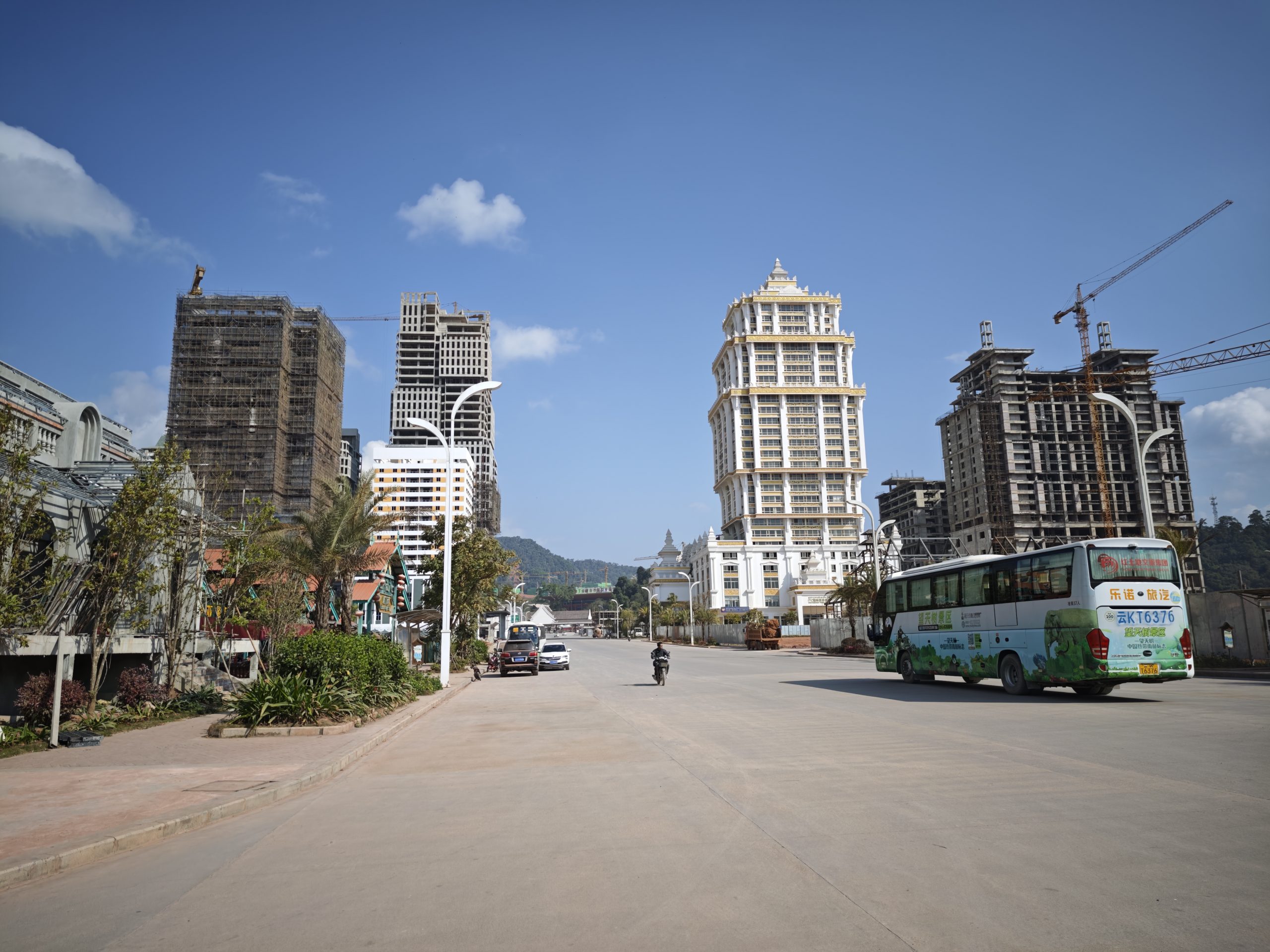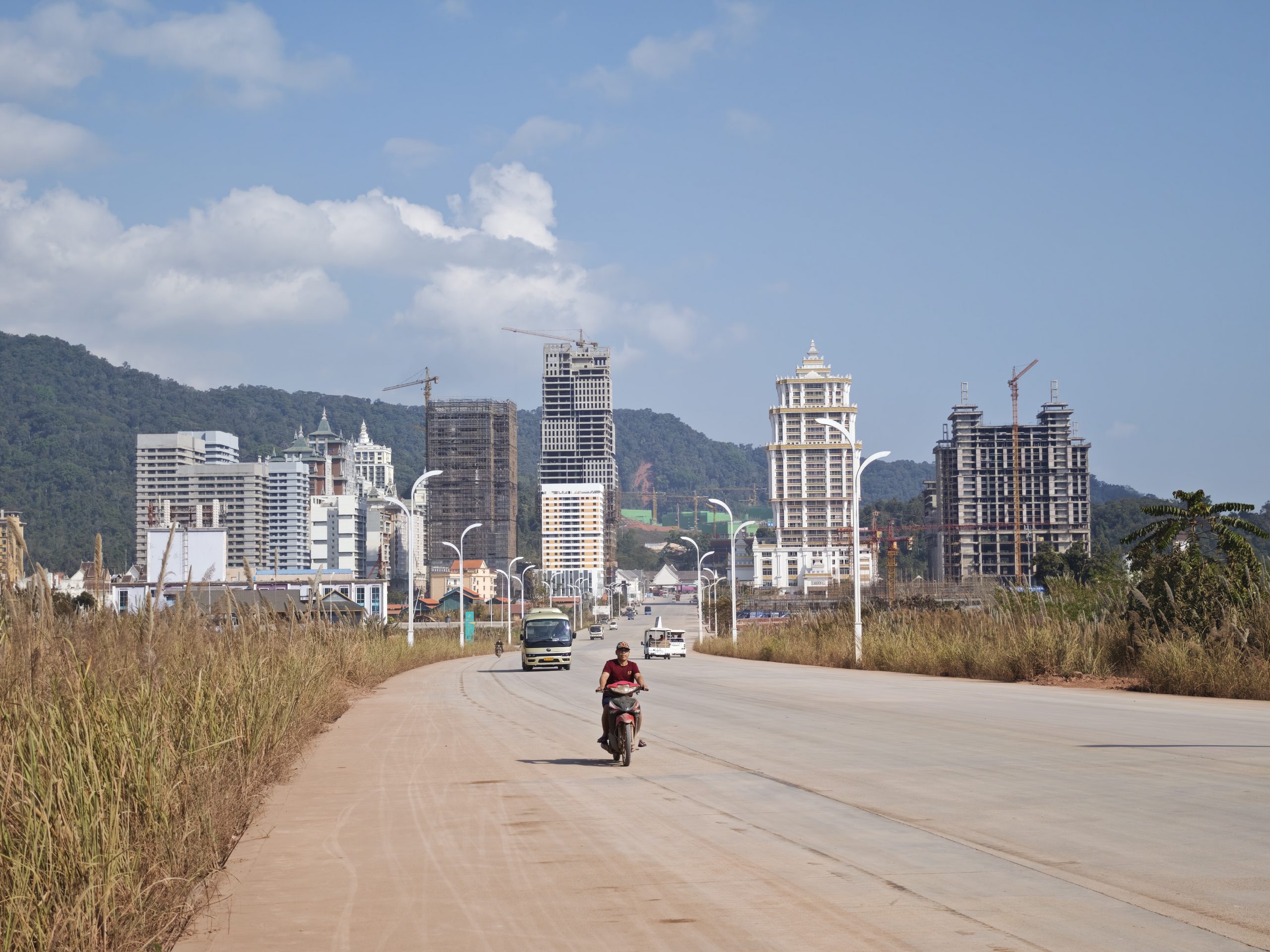 Ähnlich wie beim Überqueren der Grenze auf der Tour Auf dem Dach der Welt, von China nach Nepal, setzt auch hier der Kulturschock ein. Ist es auf der chinesischen Seite aufgeräumt, gut gepflegt, die Straßen wunderbar und kaum ein Staubkorn in der Luft, auf den ersten Metern Laos riecht es zumindest noch nach Wohlstand, wenn auch immer nach Größenwahn, was die riesigen Bürogebäude und Hotels nebst breite Ausfallsstraße angeht, dann ist von alledem aber nichts mehr zu sehen. Wir kämpfen und 18 Kilometer lang durch Baustelle, Restasphalt und Staubpiste. In Nateuil, an der Abzweigung nach Luang Namtha begrüßt uns immerhin das Wohlführ-Laos, eine nette kleine Garküche mit Pho, laotischer Nudelsuppe, die vor allen den Schärfeverweigerern in der Gruppe gut mundet.